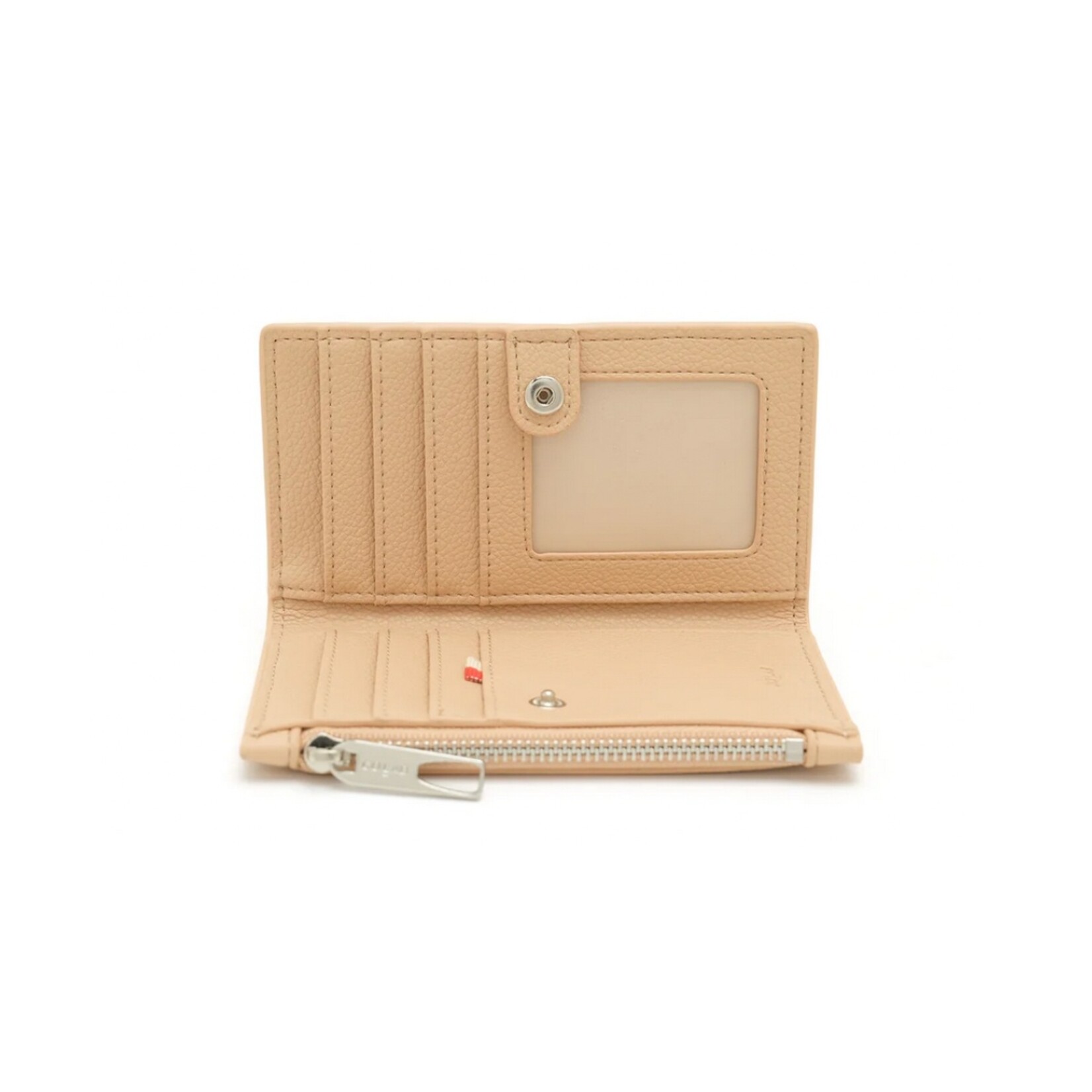 This slim wallet has 8 card holders, and a top zipper - it’s pure and made in soft textured vegan leather.